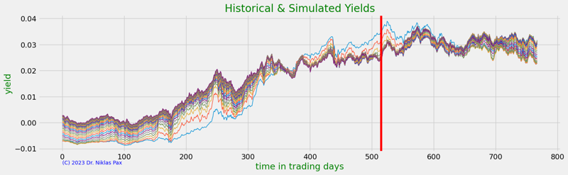 Processing of government bond yield's time series using principal component analysis. Further usage in a 3-factor interest rate model with Monte Carlo simulation.